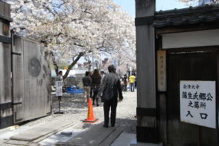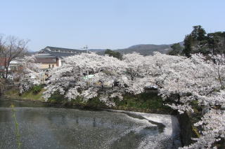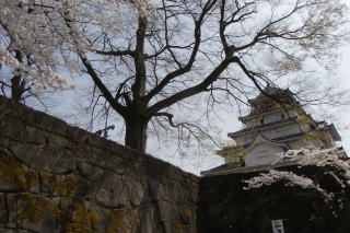 掘と石垣と桜花
