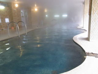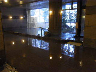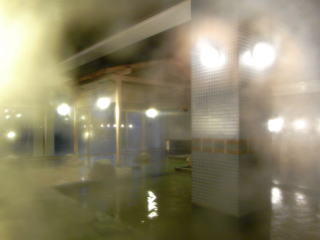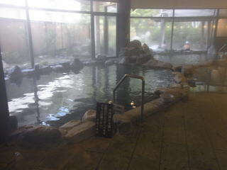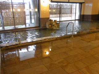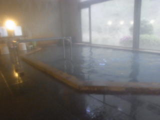 浴槽は4m×7.5m 深さ1.1mの立ち湯で、浴槽には2段の縁が設けられていて下の段に座ると肩まで浸かることが出来る。1段目は半身浴程度。浴槽底には黒い玉石が敷き詰められていて、歩くと心地よい刺激があります。その他気泡風呂があり、密閉しているので湿度と相まってミストサウナ風。