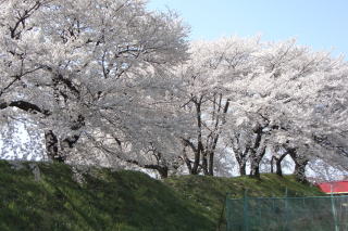 土塁と満開の桜