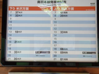 板谷駅時刻表 1日6往復