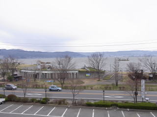 二階にある食堂、休み処は他の温泉施設にない趣きがあり、ドアの開け閉めにも懐かしさを覚える。訪ねたのは平日でしたので10人に満たない入浴者でしたが、観光シーズンの日時によっては混むことでしょうね。諏訪湖湖畔に近く散歩も楽しめる立地条件の良い施設です。