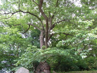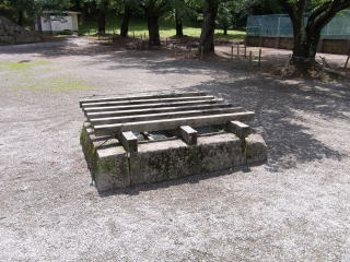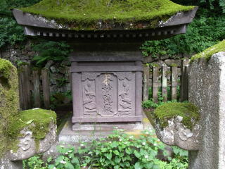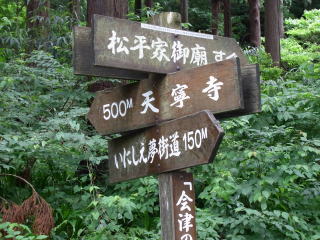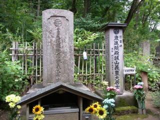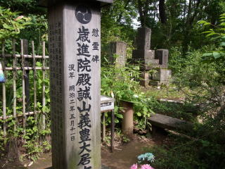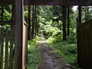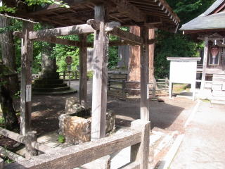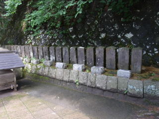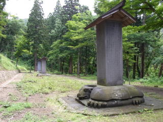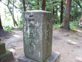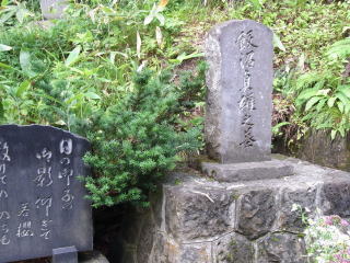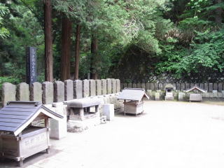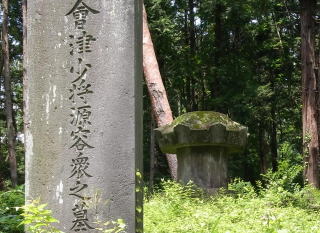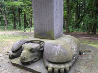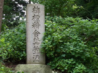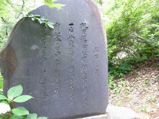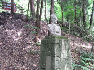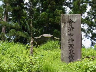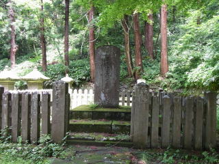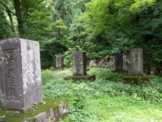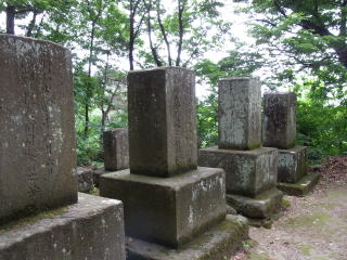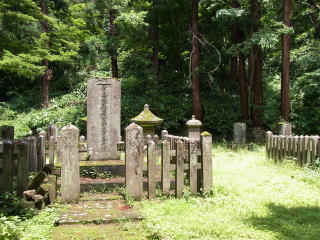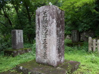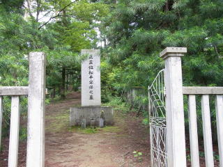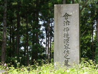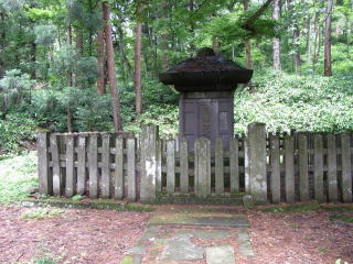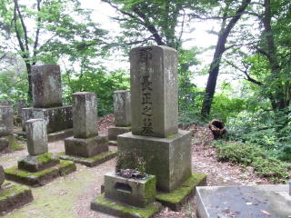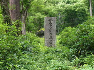 この場所の奥に見える山一体が松平家の墓所「会津松平家院内御廟」となっており、容保もここに眠っています。神道に則った巨大な墓碑がうっそうとした森の中に点在しており荘厳な空気が漂っています。