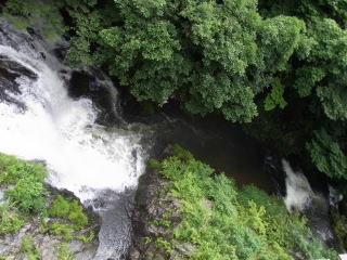 上部の雄滝(約5m)と下部の雌滝(約6m)の総称。名の由来のついては、藤という娘が淵に身を投じたという説と、僧行基がここを訪れた際、一夜にして滝が出現し「不思議ヶ滝」と呼んだからだという説があります。