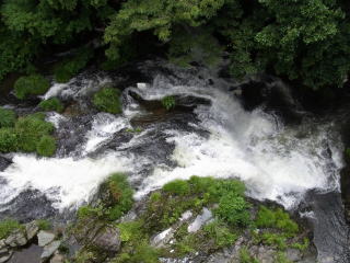 瀧の湯に沿って流れる湯川の硬い岩の川床が二段の瀧になっていて、心地よい流音に浸ることができます。旅館の名称もこの瀧に因んだものなのでしょう。