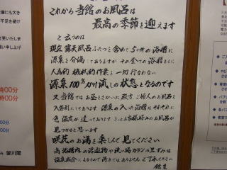 源泉は佐取館と同じ咲花六号井。全浴槽源泉かけ流しとなっている(冬季の大浴場を除く)