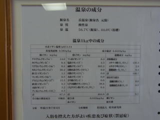 海辺の温泉によくある食塩泉で、塩類の90%以上を占めている。近くに海水浴場もあるのでシーズンには混雑するのかもしれません。けた違いに成分の多い海水浴からの仕上げには軟らかくて良い気がします。