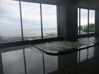 国道8号沿いにあるためか日帰りの入浴客が多い。海を見渡せる大浴場があり、露天風呂は設置されていない。