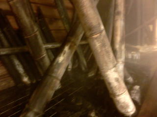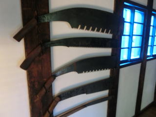 幾重にも組まれた木構造の美しさ、これが昔の職人気質に通じるものなのだろう。長い年月を重い積雪に耐え、今、さらにいきいきとしている様は素晴らしい。屋根裏の骨組みも豪雪地帯のそれにふさわしく、豪快に重なり合った梁や柱、貫などの木組み構造は昔の職人芸の現れである。家を一軒建てるには大工、左官、屋根、鳶、建具、表具師、畳、錺、庭師、土木など様々な職人の手による分業で行われた。