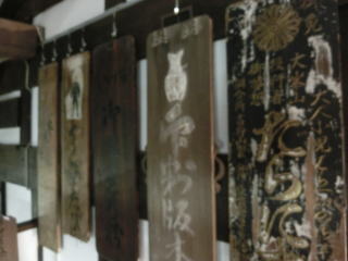 江戸時代に普及した暖簾は屋号や商標などが染め抜かれ、それはやがて木の板に蒔絵や金箔入りの文字で書かれたものに変り、一世を風靡した。天保十三年(1842)にはそれまでのような贅沢な看板は禁止というお触書が出されたために一時自制された。しかしその後、さまざまな工夫や技巧が凝らされた看板、実物看板や行灯看板などが出現し、看板の主流を占めるようになった。平仮名や万葉仮名風文字の独特な物や現代においても魅力的で素朴な味わいのあるもの、絵画的シンボルや商品や商いの内容をシンボルとしたものなどシンプルなデザインのものも多く、その迫力と豪華さに当時の商人や職人の心意気と気迫が感じられる。