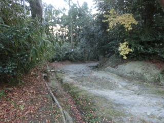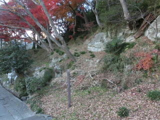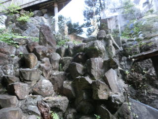 窯跡石垣と窯跡(窓越しでよく見えない)