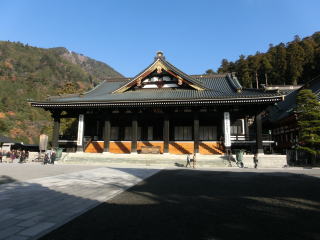 明治八年(1875)の大火以来、本堂の再建は身延山の悲願でした。機熟し、日蓮聖人第七百遠忌の主要事業として、八十八世日慈上人代に着手、八十九世日康上人を経て、九十世日勇上人によって昭和六十年五月入仏落慶式が行われました。総面積九百七十坪、間口十七間半、奥行二十八間。