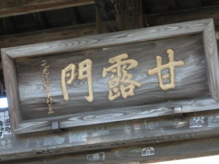 二十八世日奠上人の代に建立されたものを、明治元年(1868)に再建されました。法華経に「能く甘露の紋を開いて広く一切を度す」とも「大慈悲を以って広く甘露の門を開く」などとあり、この門を入って法華経の法益を得せしむるの意味で門の名前としたものです。扁額は元老院議官中村正直博士の筆です。