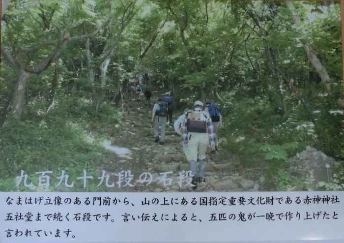 菩提梯石段は、三十代の時会社慰安旅行で下部温泉泊まりの時、五十代で家族旅行で西山温泉泊まりの時と、二度登りましたが、あらゆる神社仏閣の石段の中では最もきつく感じる石段でした。踏み石の幅と高さが同じくらいで「運動量/時間」が高いのが原因だろうと思う。で、今回は体力の限界を知ってきたので、男坂を登ることにしたが、ここも辛かった。帰りに女坂を下ったおりに女坂を見上げると、男坂と変わることなく、昔から仏様は男女の区別はしていなかった。