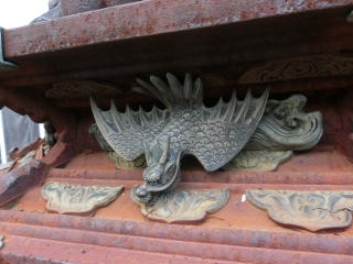 この獅子口瓦は、仏殿納牌堂の大棟西側に備えられていた鬼瓦で、昭和六年(1931)日蓮大聖人第六百五十遠忌の報恩事業として仏殿納牌堂が新たに建立されてより、日蓮大聖人御降誕八百年の慶賛事業として、平成二十四年に屋根瓦を銅版に葺き替えるまでの約八十年間、仏殿納牌堂の屋根を平穏ならしめてきた鬼瓦である。
