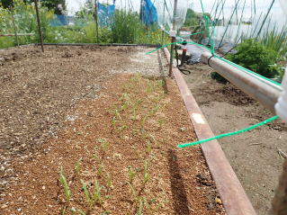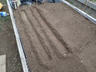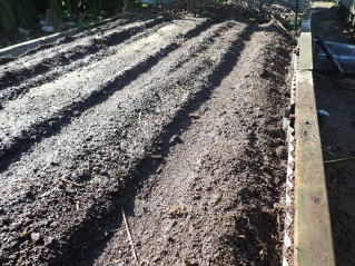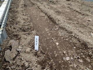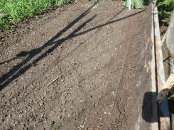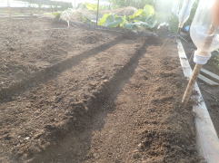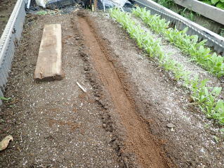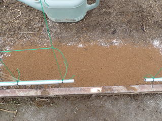 条まきし覆土した後、その上を手で軽く押さえて鎮圧してから灌水します。