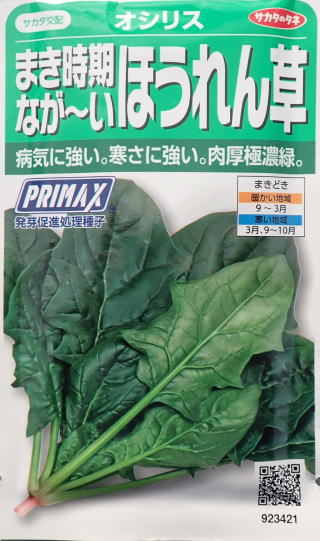 極濃緑で肉厚な美味しいホウレンソウ。耐寒性があり低温伸張性に優れているので、寒い時期の栽培にもおすすめの品種です。また、土壌適応性や耐湿性にも優れており、火山灰土から水田裏作まで幅広く栽培できます。