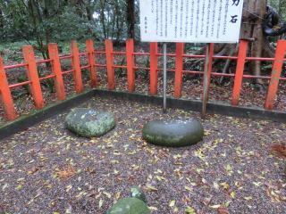 息栖神社の御本殿は平城天皇の御代(大同二年四月十三日 806)、奈良時代にこの地に遷宮されました。以来、貞観八年(876)一月、宝永三年(1704)、享保八年(1723)、弘化四年(1848)と、数回に及ぶ建て替えがありました。この五個の石はその何れの時かに礎石として使用されて以来、昭和三十五年までその務めを果たしました。
