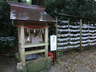 このような姿を昔の人は神々しい森(こうごうしいもり)という言葉で称えましたが、和らぎと明日への活力づくりにみなさんもゆっくりと森の香気にふれてください。なお、境内の宮水である御手洗の湧水も昔から長命水と云われておりますので、この真清水をも賞味され、健康で活力のある毎日をお送りください。