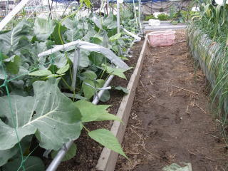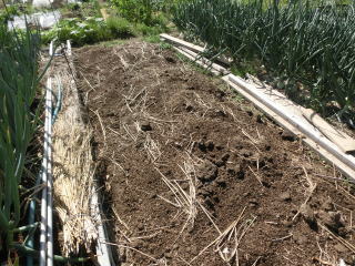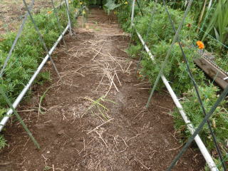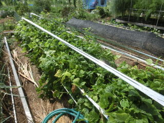 蒔いて1ヵ月位たったら、20日ごと位に化成肥料をウネの間に追肥を与えます。