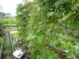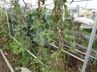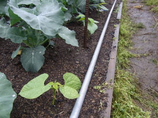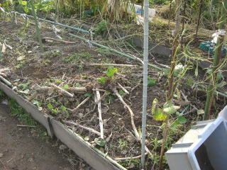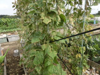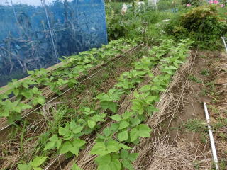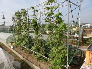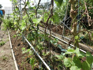 つるなし種ですから、支柱を立てる必要はありませんが、