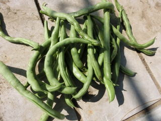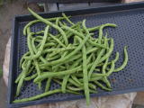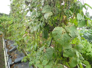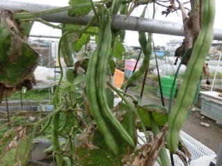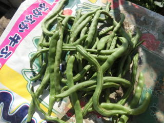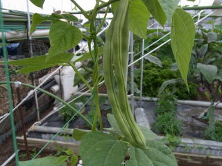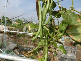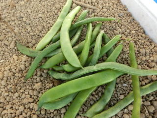 サヤは12〜15p位、巾2p位で美しい緑色、揃いもよく多収。