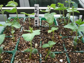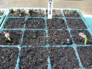 本葉2枚が開いた頃、元気のよい株を2本づつ残して抜き取ります。