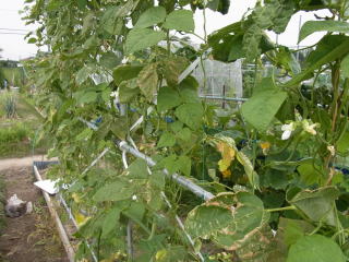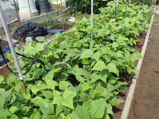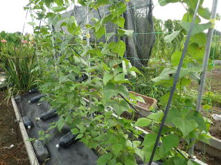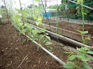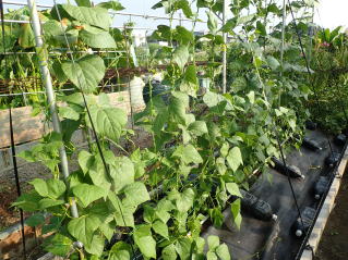 菜園にタネを直接蒔き、2cm位土をかけます。早播きする時は、ポリフィルムを敷いて、地温を上げてから蒔いてください。畑には1u当たり堆肥2.5kg、化成肥料50g、苦土石灰120gを施します。生育につれて支柱を立てて、つるを絡ませます。莢がなり始めたら30gの化成肥料を何回か施します。高温になると莢がつきにくくなるので、蒔く時期に注意しましょう。