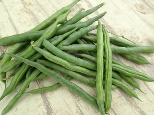 約65日で採れる、支柱立て用のつるあり種です。莢は光沢のある鮮緑色の丸莢で、極めて柔らかく、一度にたくさん収穫できます。