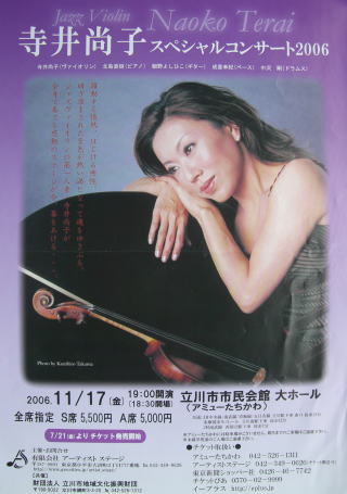 躍動する情熱、はじける感性。研ぎ澄まされた音色が熱い湯となって魂をゆさぶる。ジャズヴァイオリンの第一人者 寺井尚子が全身で奏でる感動のステージが今、幕をあける