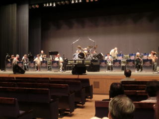 感想から言えば、トランペット4本、トロンボーン4本、サックス5本、ピアノ、Eベースギター、Eリードギターとドラムスの構成。1500〜2000人の会場でしたので、あえてスピーカーを使うこともなかったと思います。ギター類は自前のアンプで十分でしょうし、生演奏だったらなと思う次第。強いて言えばピアノの音源くらい。