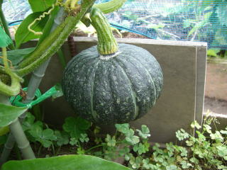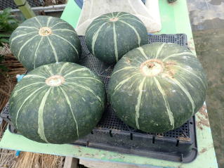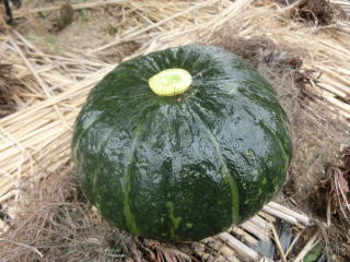 果皮黒緑色でやや凸凹があり、味は美味しくて貯蔵性も心配ありません。