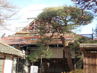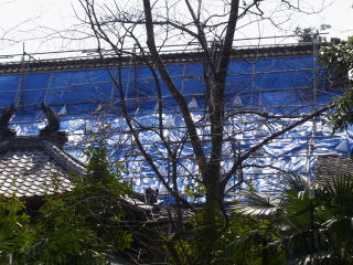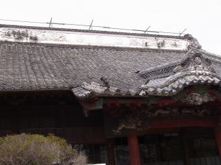大日堂大棟のし瓦修復中(2017年)
