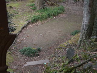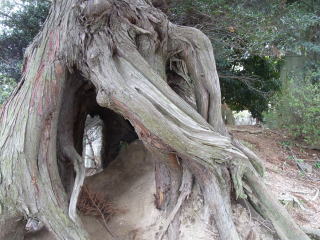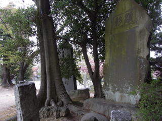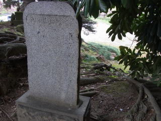 根により傾く石碑