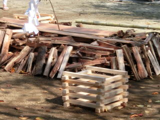 神域に御焚火材を組みます