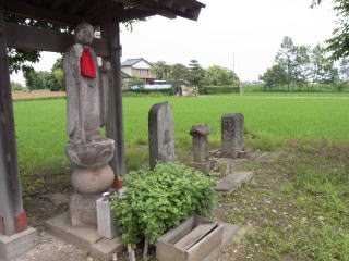 地蔵と並んで母子の石塔
