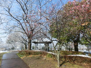 駐車場の八重桜