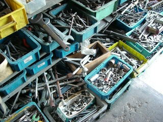 中古工具の販売 左から手工具(ドライバー等) 穴あけ工具(ドリル等) 切削工具(タップ・完成バイト等)