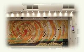 ステージ 川の流れ行く情景とせせらぎの音でコンサートの幕開け
