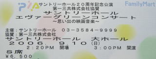 皆様のお蔭で大入り袋いただけました。ありがとうございます。今回で16回目の映画音楽コンサートになりました。そしてサントリーホール開設20年の記念コンサートにも加えさせていただいております。本日のコンサートのテーマは「愛は戦火を越えて」と題しましてまずは、ララのテーマ 慕情をおおくりしました。これからの曲もそのようなテーマでプログラムを作らせていただきました。