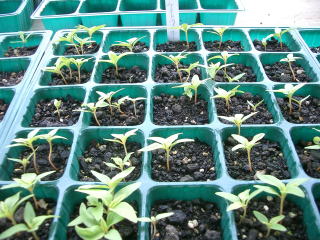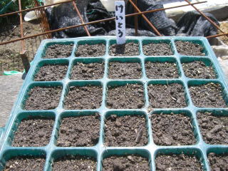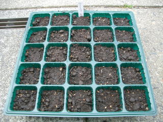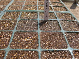 発芽には高温が必要で八重桜が散り始める頃からが適期です。植え替えや肥料切れを嫌い、清潔で有機質に富む土にバラ蒔きにして5mmほどの土をかけます。本葉2〜3枚の頃根を切らないように注意して小鉢やポットに植え替えます。