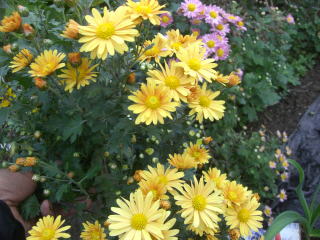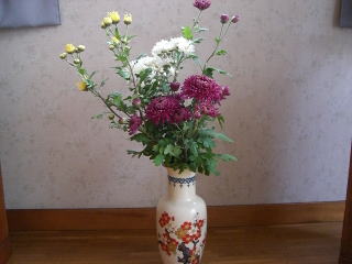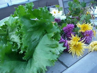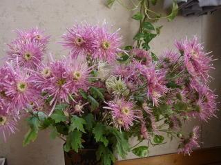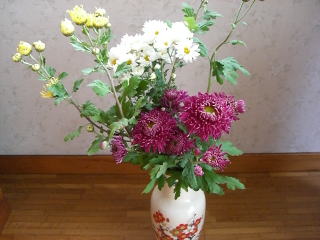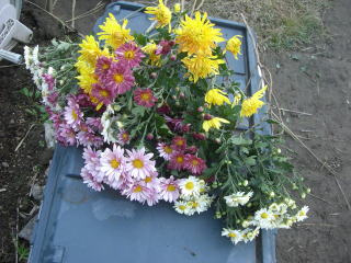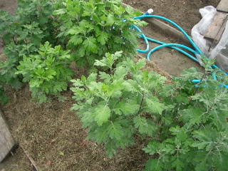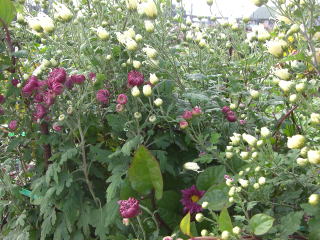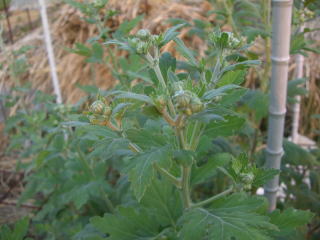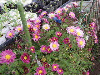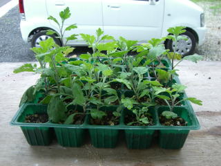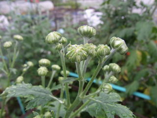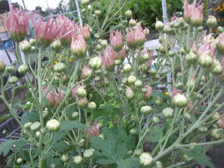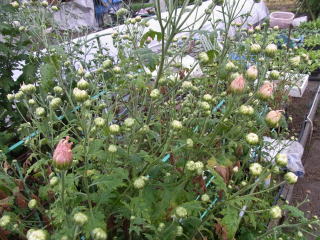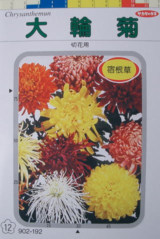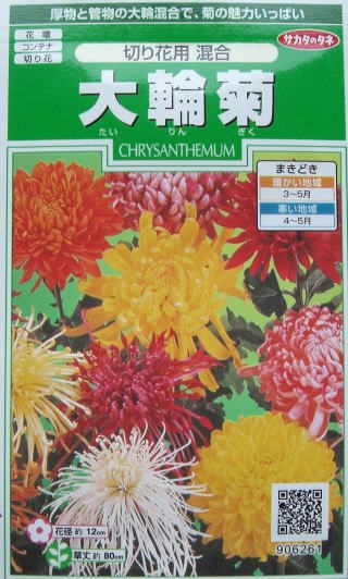 菊をタネから育てると、どんな色の花が咲くか、花が咲くまで分からないのでたのしみです。この混合は、切花用大輪混合で、黄、白、桃、樺色などの花が咲きます。