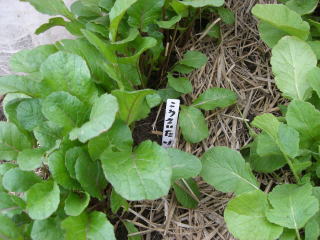 発芽後込み合っているところを早めに間引き、本葉5〜6枚のころ30cm株間になるようにします。とうが伸び始めたら、肥切れしないよう化成肥料化液肥を施します。冬は北側に笹、木の枝などを立てて防寒します。