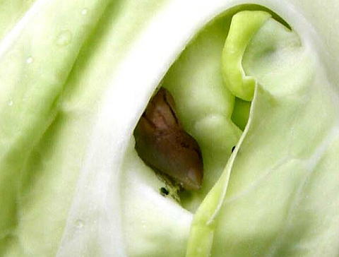結球が始まったら物理的防除のみに切り替えて、良く観察し、中が害虫天国にならないように注意します。