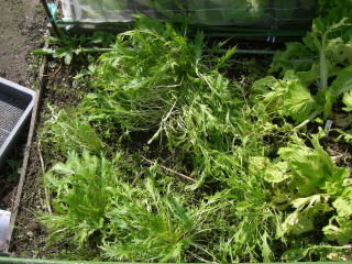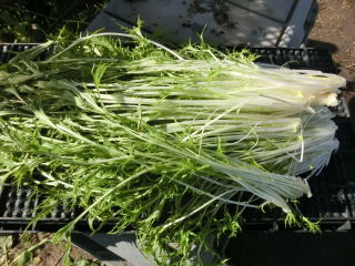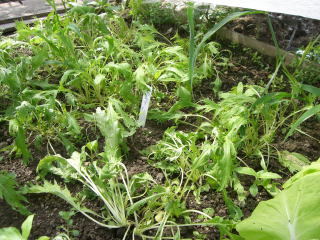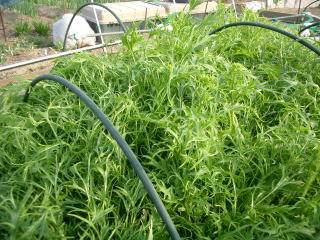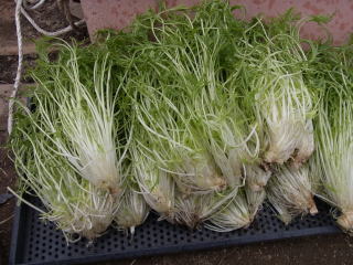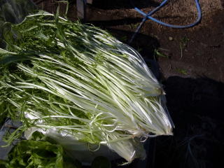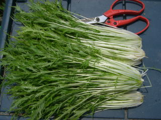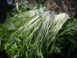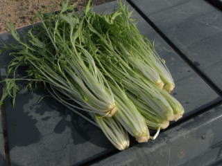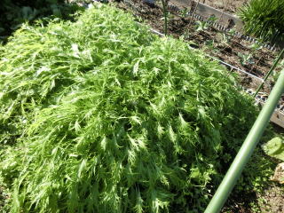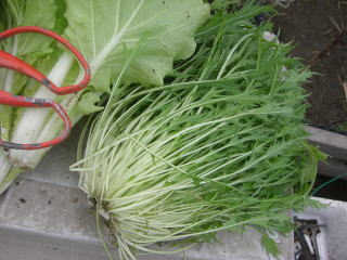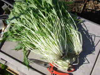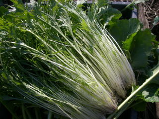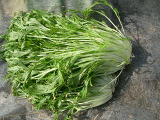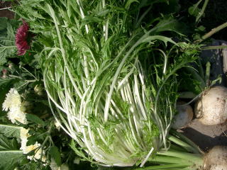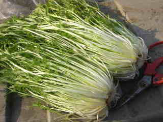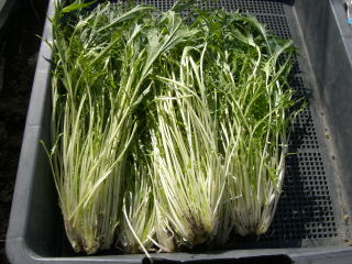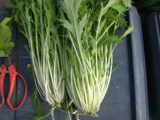 草丈30cm程度で、株が張らない内の若い時期に収穫するとサラダに向きます。大株で収穫すると鍋の具材によく合います。