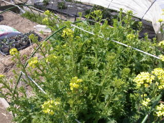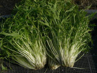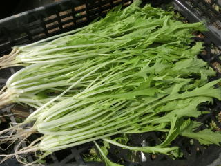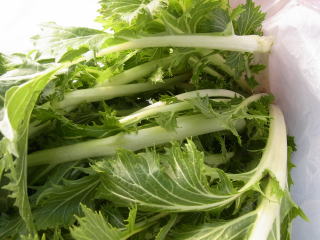 葉の切れ込みが浅く、葉幅の広い京菜です。ミズナより濃緑色で黒味を帯び、葉柄は太く肉厚で軟らかく、風味が良いので、漬物や煮物に適します。