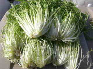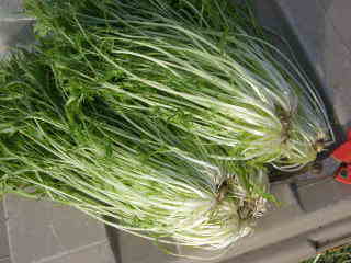 鮮緑色の細葉で葉緑に多数の欠刻があり、葉軸は非常に白く極細で、株張り・株揃いに優れ、分けつ力も旺盛で、播種後30日位から収穫できます。特有の香りと歯ざわりの良い新しいサラダ感覚のおいしい野菜です。