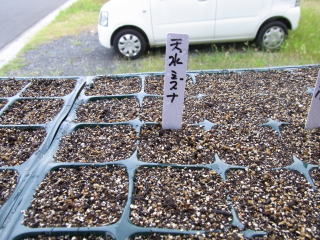 2〜3日で発芽してきます。双葉が出てきたら混んでいるところを間引きし、株間を2〜3cm位にしましょう。肥料は1u当たり最初に堆肥3kg、苦土石灰100g、化成肥料100g施しておきます。プランターでも栽培できます。サラダや一夜漬け、鍋など京野菜独特の風味をお楽しみください。