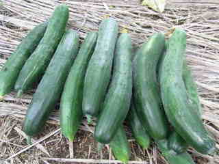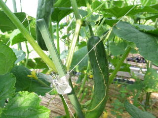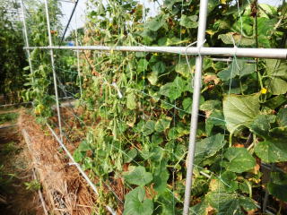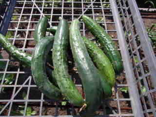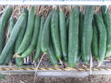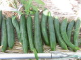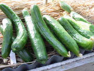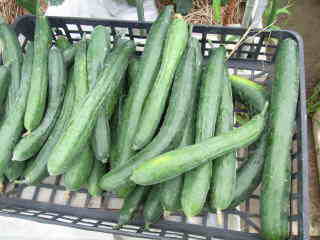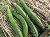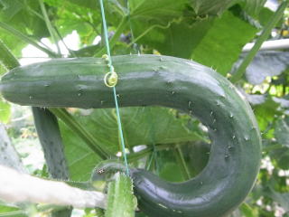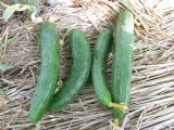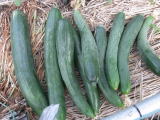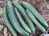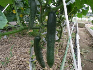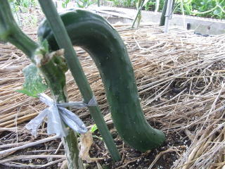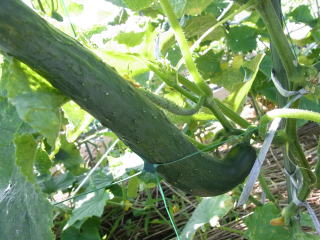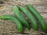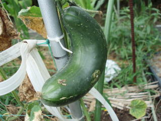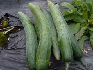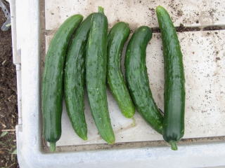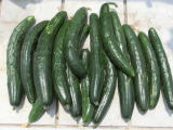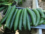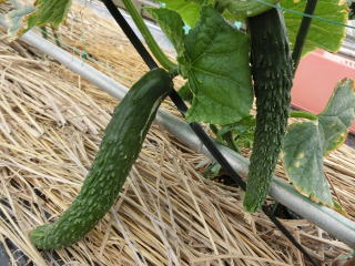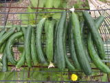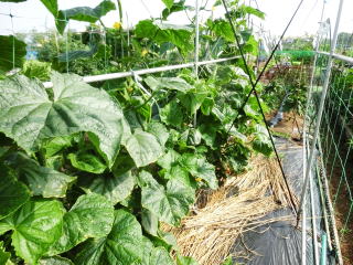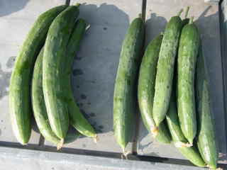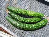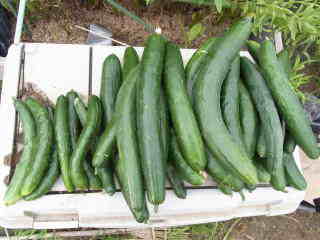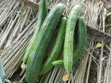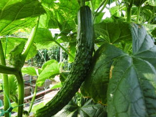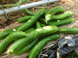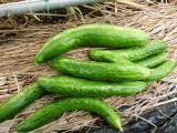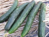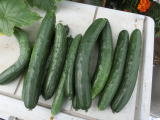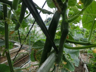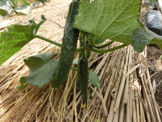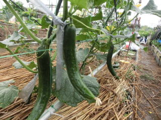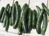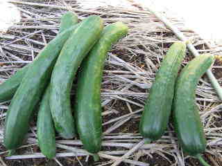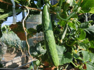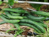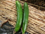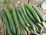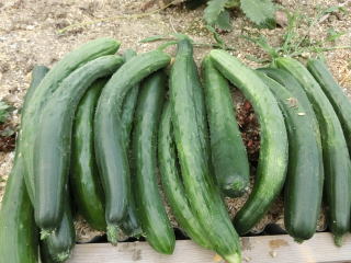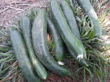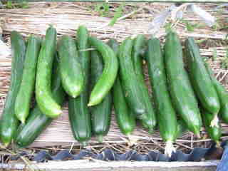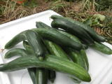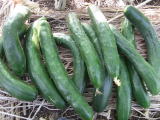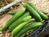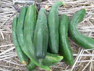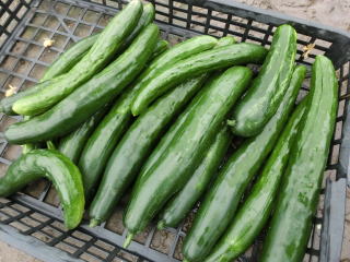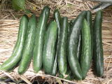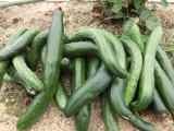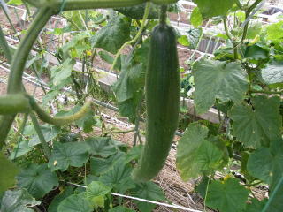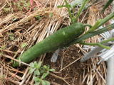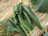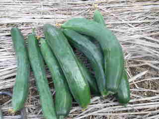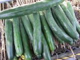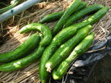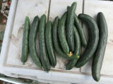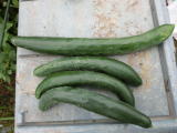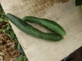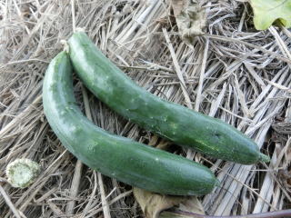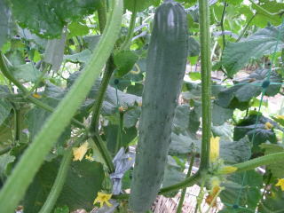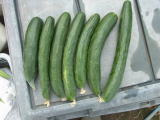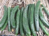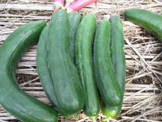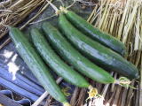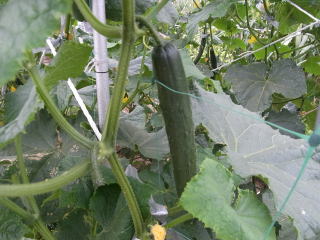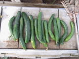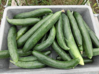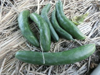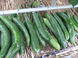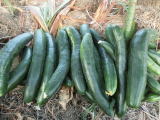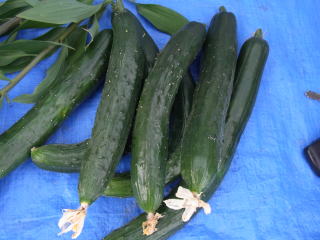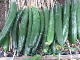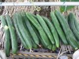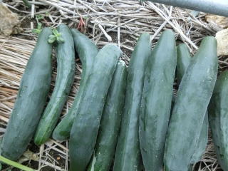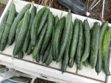 果は濃緑色で光沢よく高温時の色ボケも無く果長22糎前後で市場向け、自家用の何れにも良い多収系品種です。