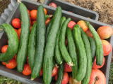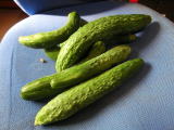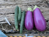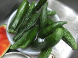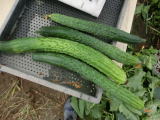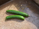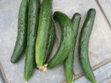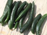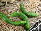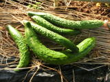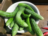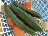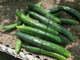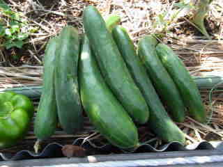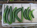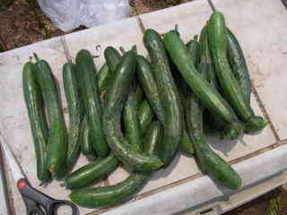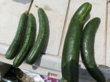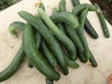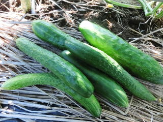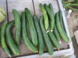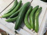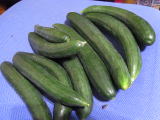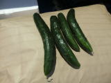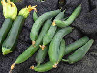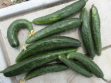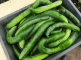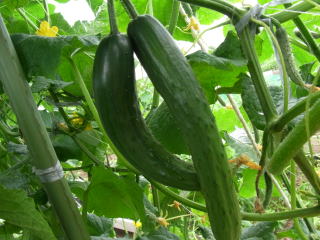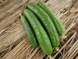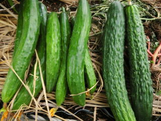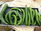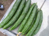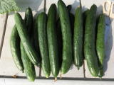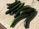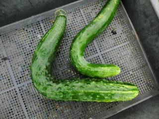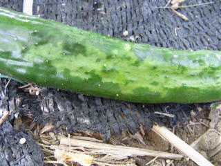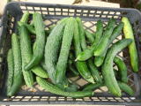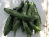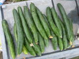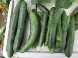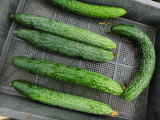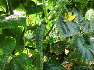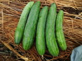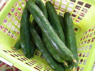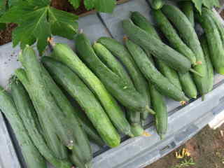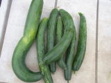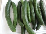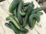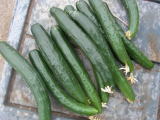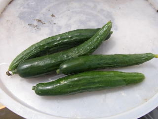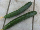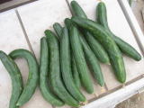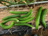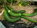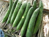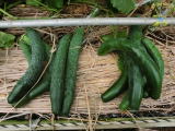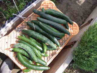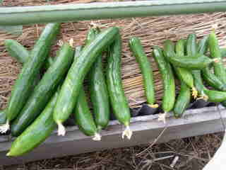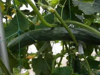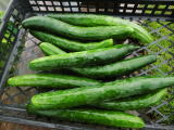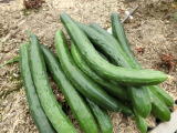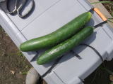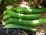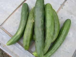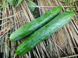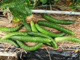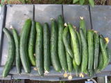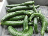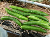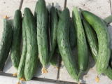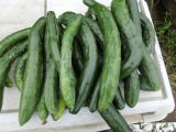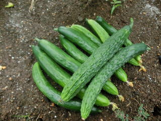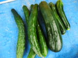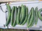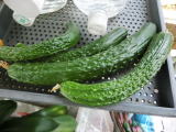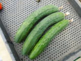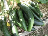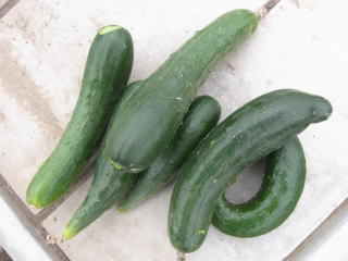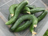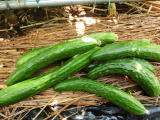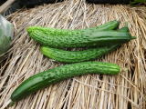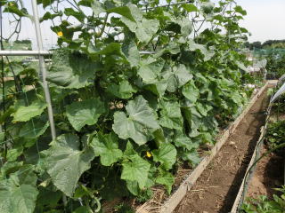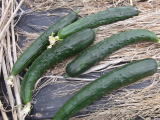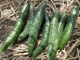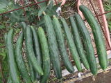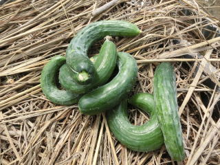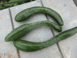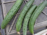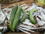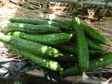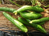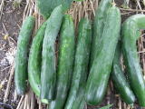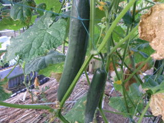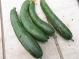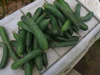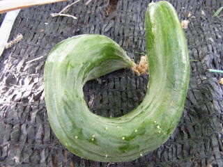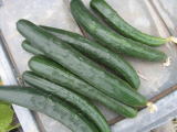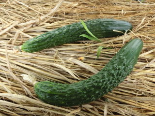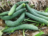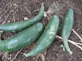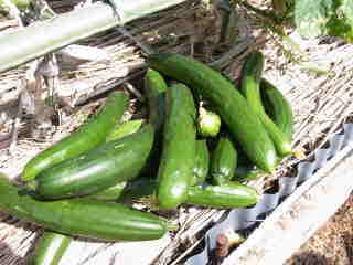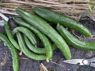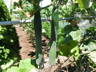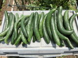 果は濃緑色で光沢よく高温時の色ボケも無く果長22糎前後で市場向け、自家用の何れにも良い多収系品種です。
