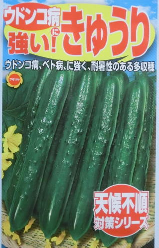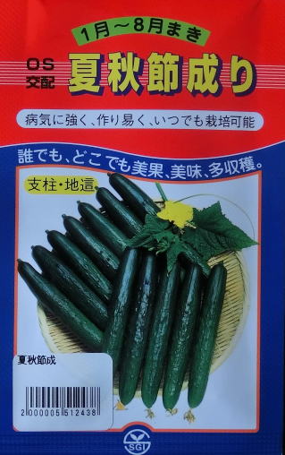 四元交配としたものから系統分離し数多くの固定種を作り特に耐病性の節成胡瓜を選定し、耐病性の枝成胡瓜を交配したニュータイプのF1新品種で、特にうどんこ病、べと病、ツル割れ病に強い早生系節成胡瓜で、土地を選ばず作りやすい。